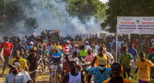 In Cameroon’s largest city, Douala, the regional governor said demonstrators “attacked” a gendarmerie brigade and police stations in two districts on Sunday.