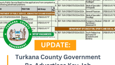 -    Turkana County Government Re-Advertises Key Job VacanciesThe Turkana County Public Service Board has announced the re-advertisement of multiple job openings, ranging from senior administrative and medical… Read More »