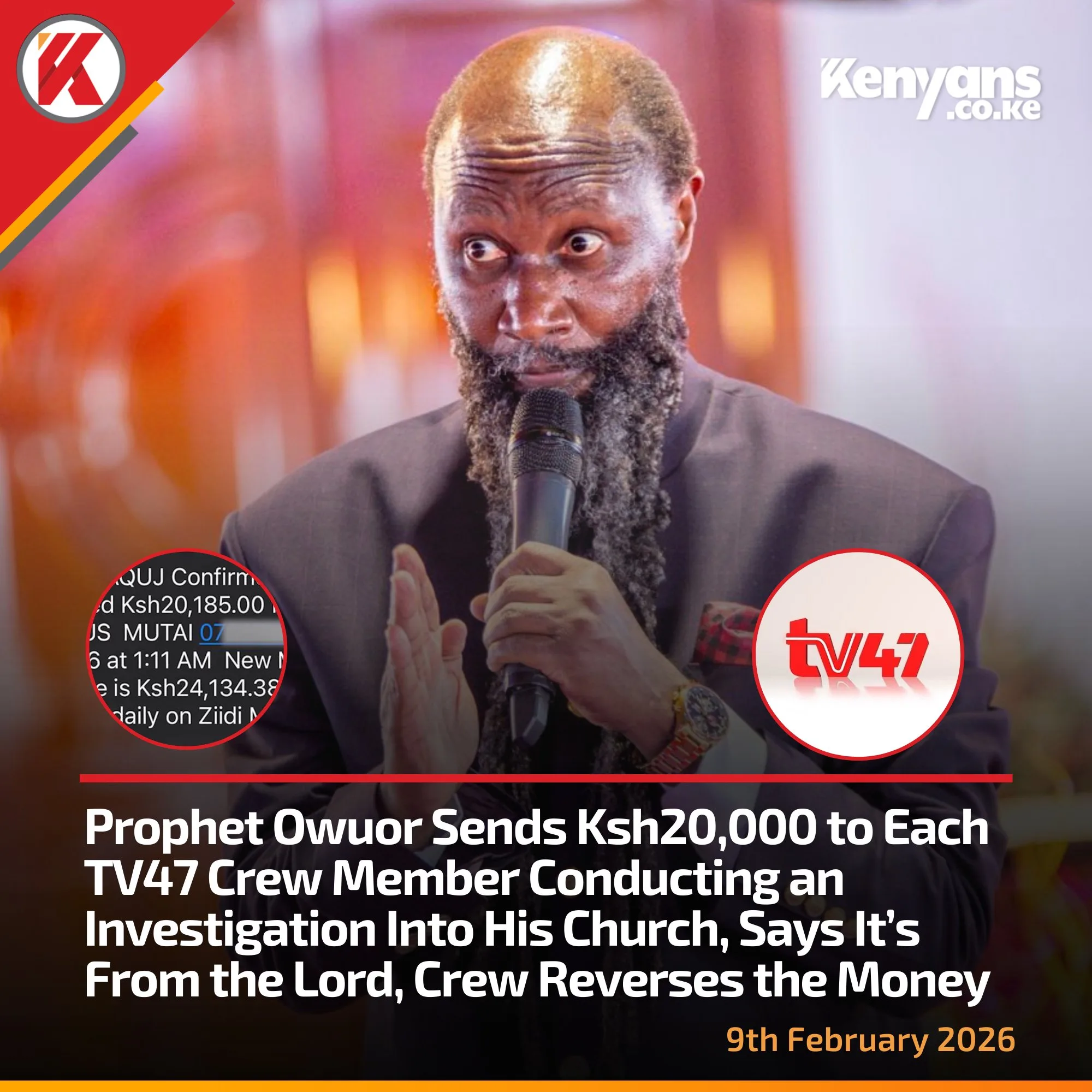 Amid the escalating dispute, reports emerged alleging that Prophet Owuor sent KSh 20,000 to each TV47 crew member involved in the investigation, with claims the money was “from the Lord.” The media crew reportedly reversed the payments.