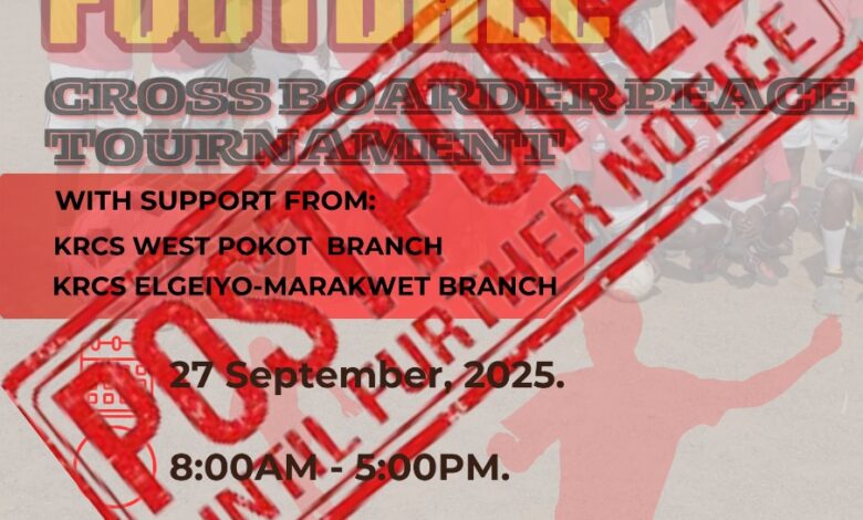 The much-anticipated Cross-Border Peace Football Tournament, organized by the Kenya Red Cross Society (KRCS) Turkana Branch with support from the West Pokot and Elgeiyo-Marakwet branches, has been postponed until further notice due to escalating insecurity in Kainuk.