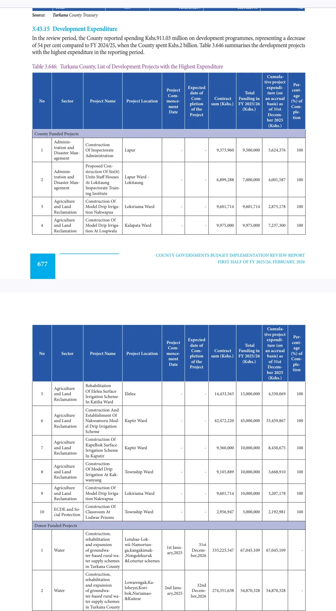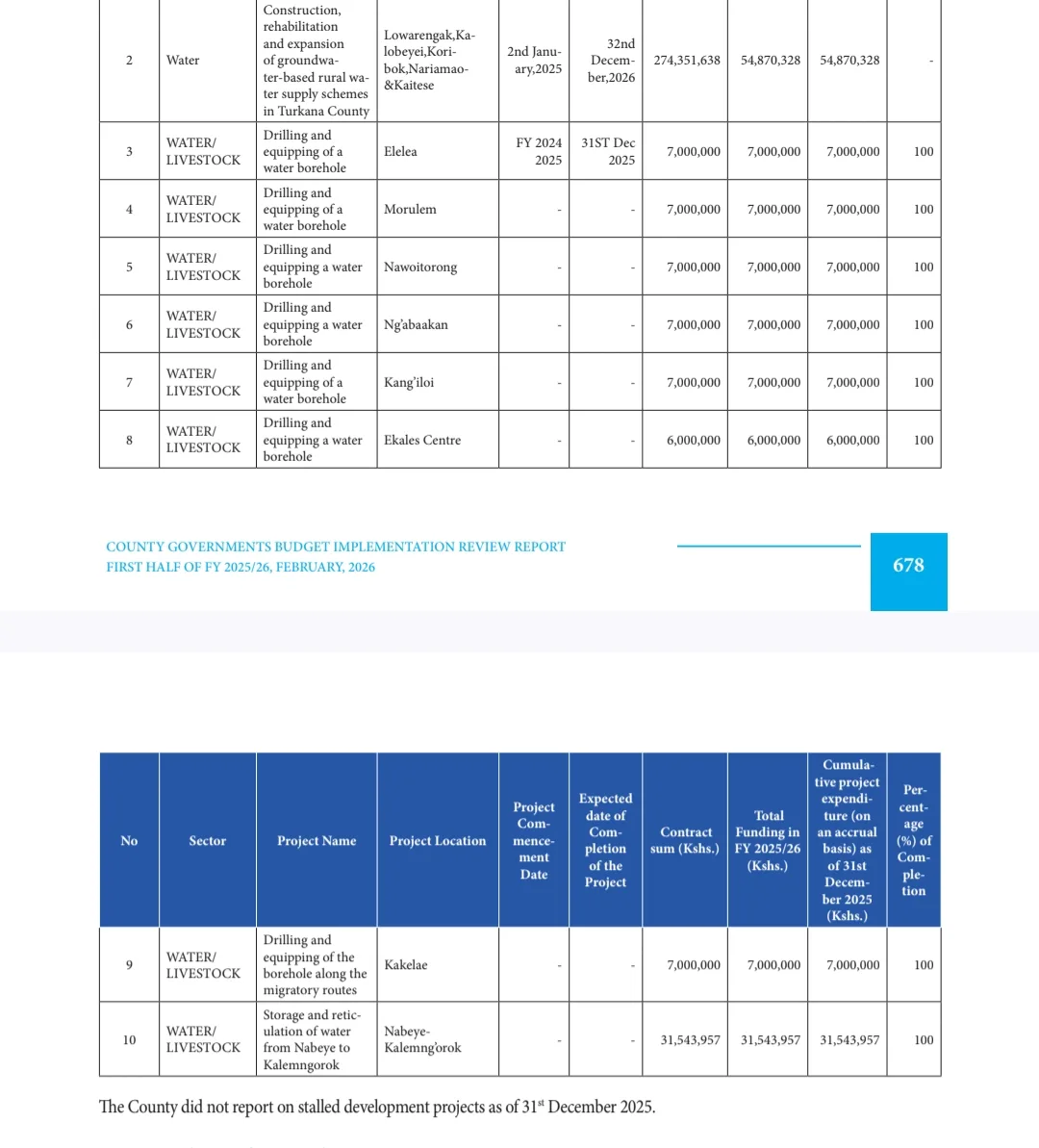 Notably, several projects, especially in water and irrigation, recorded full (100%) expenditure against allocated funds by December 31, 2025, indicating progress in specific interventions despite the overall drop in spending. These projects are critical in addressing water scarcity and supporting livelihoods in arid regions.
